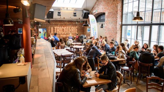 Le Foyer est l’espace central de la Tricoterie. Il offre un espace en L particulièrement lumineux et convient parfaitement pour des présentations, des workshops ou l’accueil de votre public.